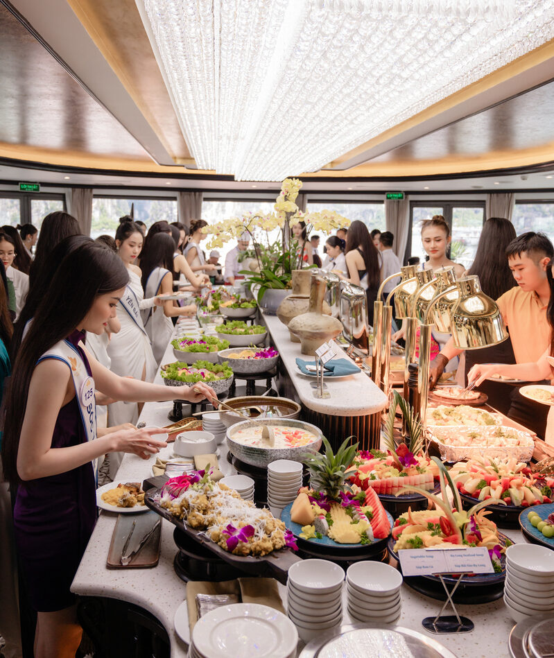 Catherine Cruise mang nét đẹp đậm chất nghệ thuật Đông Dương, mang những dấu ấn đầy sức hút của người con gái Á Đông truyền thống. Du thuyền còn nổi bật với sắc vàng kim của hoàng hôn vịnh Hạ Long nên càng tôn lên sự lịch lãm.