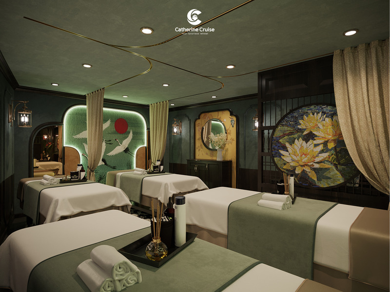Trong hành trình nghỉ dưỡng ở Catherine Cruise, bạn sẽ được tận hưởng sự thư giãn ở phòng Spa & Massage. Đây là một điểm dừng chân để thả lỏng cơ thể, giải tỏa căng thẳng và tái tạo tinh thần. Với chuyên gia trị liệu chuyên nghiệp, du khách sẽ cảm thấy hoàn toàn hài lòng. Đặc biệt, tại đây có dịch vụ xông hơi đá muối cực kỳ thư giãn.