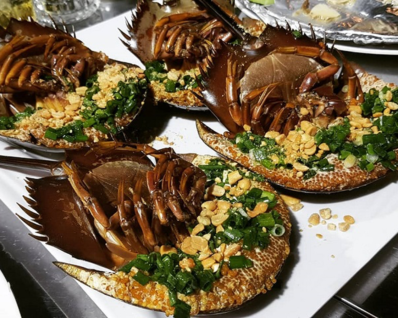 Ẩm thực Vân Đồn là “linh hồn” hành trình, tập trung vào hải sản tươi sống như chả mực giã tay – đặc sản Quảng Ninh (150.000 VNĐ/phần tại quán ven đường) – hay hàu nướng mỡ hành, sá sùng xào tỏi và sam biển hấp gừng mùa hè. Thử buffet hải sản tại chợ Cái Rồng hoặc nhà hàng Phương Đông (500.000 VNĐ/người), kết hợp món dân dã như bánh cuốn trứng Vân Đồn và rượu cần Tày. Các tour ẩm thực đường phố giúp khám phá sâu hơn, đặc biệt trong Liên hoan Ẩm thực Quảng Ninh 2025 (tháng 10).