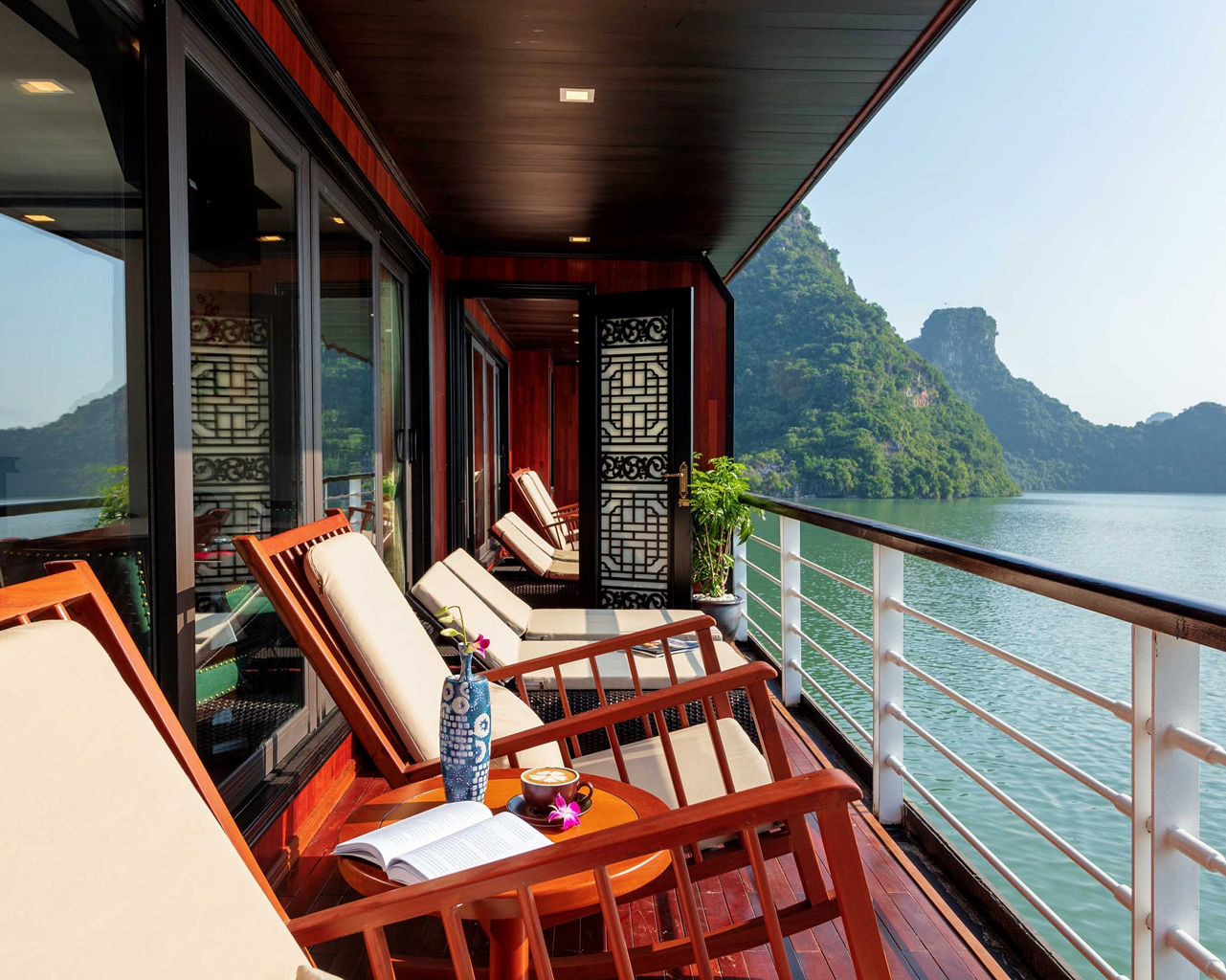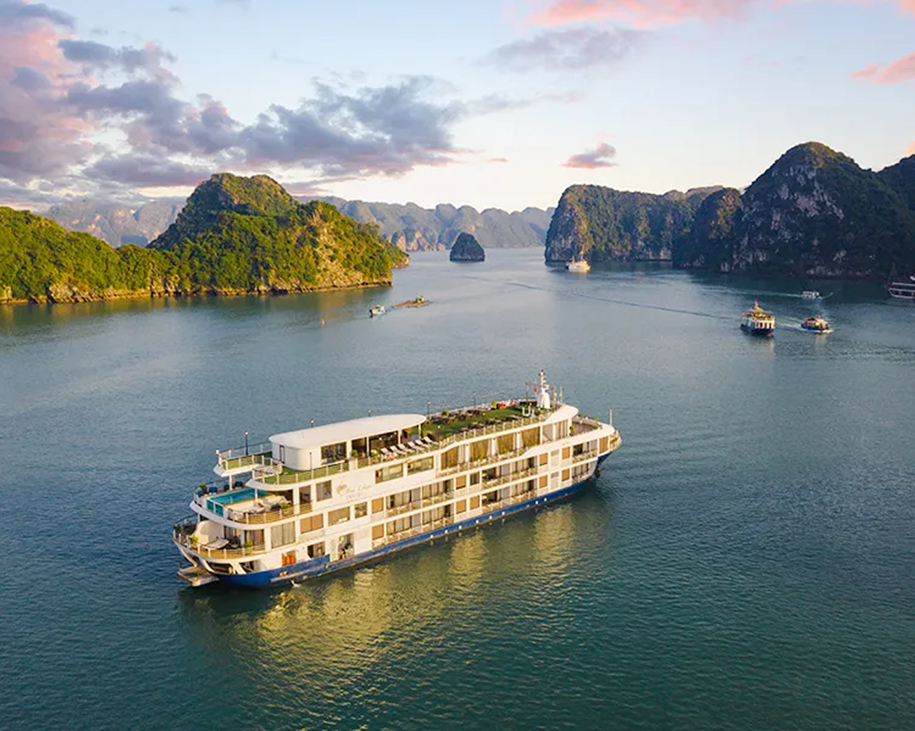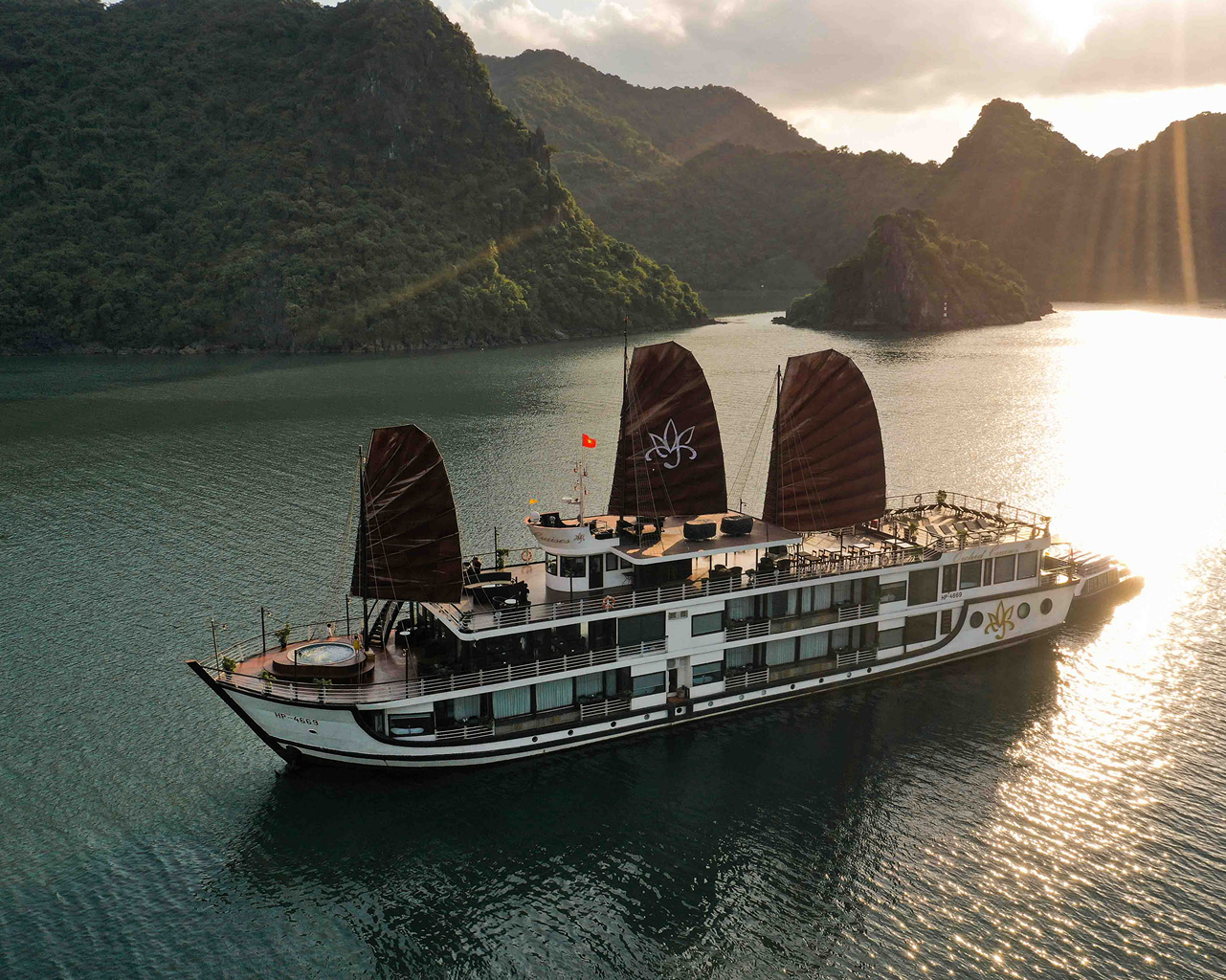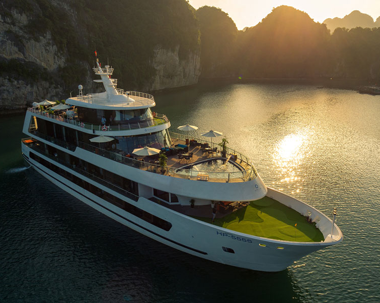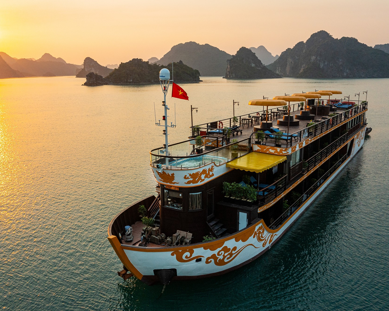 • Điểm nổi bật: Ẩm thực fusion tinh tế từ bò kho đến escargot hải sản, tour hang Động Tối bằng thuyền riêng với ánh sáng huyền ảo, cocktail hoàng hôn trên sundeck được pha chế theo sở thích.