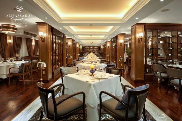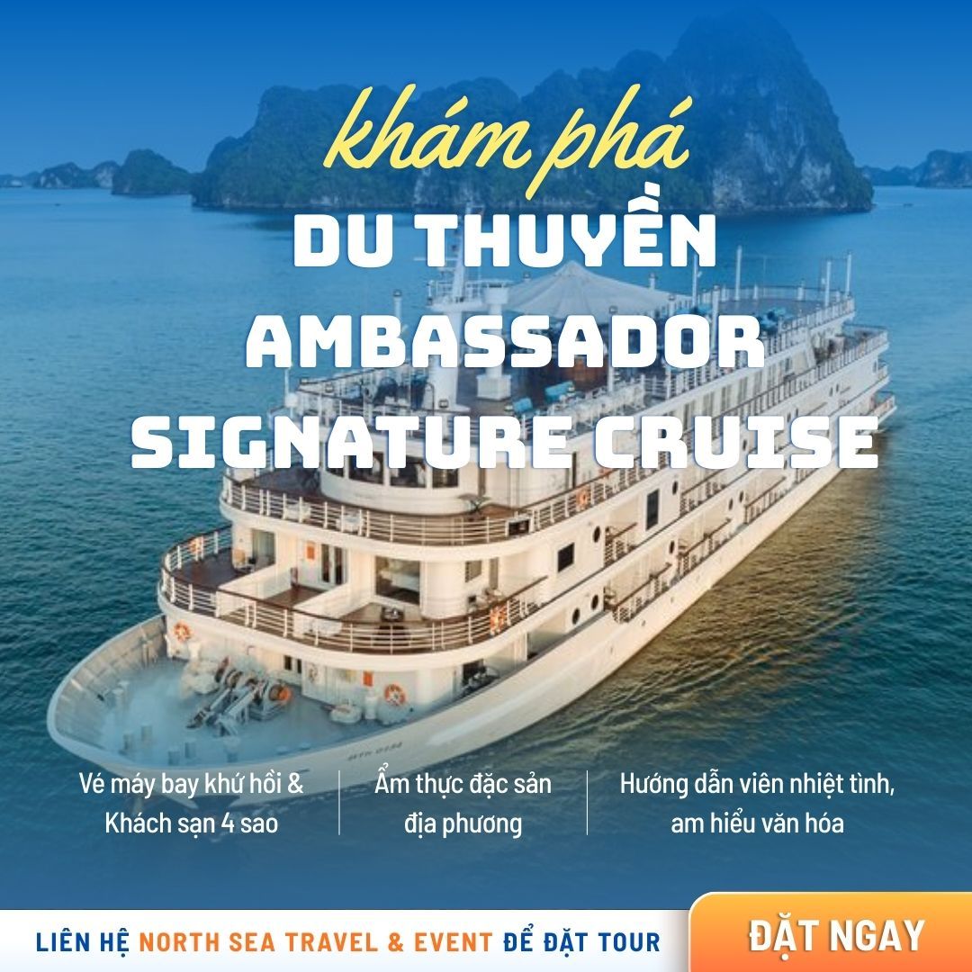 11:45–12:30 Du khách di chuyển đến Du thuyền Ambassador Signature (đỗ tại bến Gia Luận) bằng tàu cao tốc.